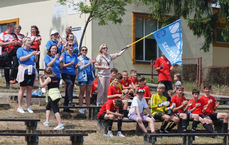 Na turnieju doping prowadzili głównie rodzice młodych piłkarzy, a z niektórymi drużynami przyjechały naprawdę liczne i głośne ekipy rodzicielskie. Dopingowali też koledzy z drużyn, które akurat miały wolne. Grano w 11-osobowych składach na pełnowymiarowych boiskach (w piątek jedno było nieco skrócone, o czym pisaliśmy wcześniej) z uwzględnieniem spalonych, lecz mecze prowadziło tylko dwóch sędziów, a każdy biegał na jednej połowie boiska, na linii, lecz bez chorągiewki, a z gwizdkiem. Liczono bramki i wyłaniano zwycięzców pojedynków, ale... nie prowadzono końcowej klasyfikacji turnieju. Tak się często ostatnio dzieje w dziecięcych turniejach. Czy to dobre rozwiązanie? Eliminuje stres, co jest plusem, ale chyba nie wszystkim młodym piłkarzom to się najbardziej podobało... Chociaż nie wyłoniono triumfatorów oraz srebrnych i brązowych medalistów, mecze były emocjonujące i nadzwyczaj zacięte. Widzieliśmy otarcia i siniaki na nogach, a czasem i twarzach młodych piłkarzy. Jeden z graczy Miedzi kończył turniej z obandażowaną głową i tamponem na łuku brwiowym.
