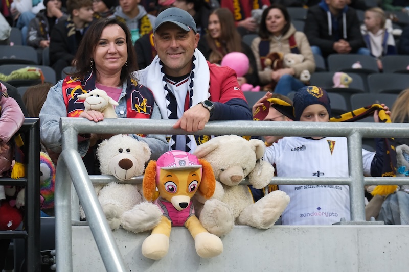 W przerwie meczu szczecinianie licznie i gorąco odpowiedzieli na akcję Fundacji STS i Pogoni „Dorzuć Misie”. Przypominamy, że celem było wyrzucenie z trybun jak największej liczby maskotek. Poza gwarantowanymi 10 000 zł na leczenie 3-letniego Adasia Orlika z Morzyczyna, cierpiącego na szalenie groźną chorobę DMD (Dystrofia mięśniowa Duchenne'a), Fundacja STS przekaże 1 zł za każdego pluszaka, który w niedzielę wylądował na murawie stadionu, a był to prawdziwy deszcz maskotek! Pieniądze zbierane są na leczenie i rehabilitację, a najważniejsza jest terapia genowa w USA. Kto jeszcze chciałby pomóc, może to zrobić przez internet (www.siepomaga.pl/adam-orlik). (mij)
