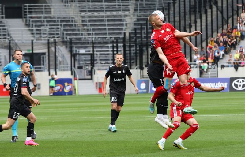 Na finiszu rundy wiosennej ekstraklasy każdy punkt jest na wagę złota. Pogoń tocząca korespondencyjną rywalizację o trzecie miejsce z Lecha pojedynek z outsiderem z Legnicy rozpoczęła mało efektownie. Miedź mimo przegranego sezonu nie zamierzała ułatwiać Pogoni walki o brąz i postawiła bardzo trudne warunki. Dobrą grą w defensywie i szybkimi kontrami już w pierwszej połowie zaskakiwała portowców. Goście mieli w pierwszych 45 minutach więcej okazji do zdobycia bramek i więcej celnych strzałów. Miedzi sprzyjała też VAR, który wszystkie kontrowersyjne sytuacje przed przerwą zweryfikował na korzyść gości.