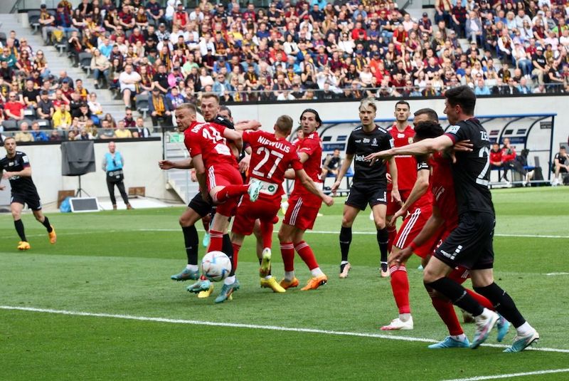 Zdegradowana już do I ligi Miedź, w której szeregach pierwszoplanowe role odgrywał były piłkarz portowej jedenastki Kamil Drygas, mocno dała się we znaki Pogoni. Walcząca o trzeci z rzędu brązowy medal PKO Ekstraklasy drużyna Jensa Gustafsona zapewniła sobie komplet punktów dopiero w 76 minucie.