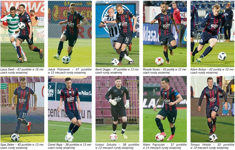 Suma zdobytych punktów przez poszczególnych piłkarzy pokazuje, że udało się stworzyć kręgosłup drużyny. W tylnych formacjach niekwestionowaną gwiazdą był Lasza Dwali, w środkowej strefie boiska prym wiedli: Jakub Piotrowski i Kamil Drygas, natomiast w przedniej formacji prawdziwą rewelacją okazał się Adam Buksa.