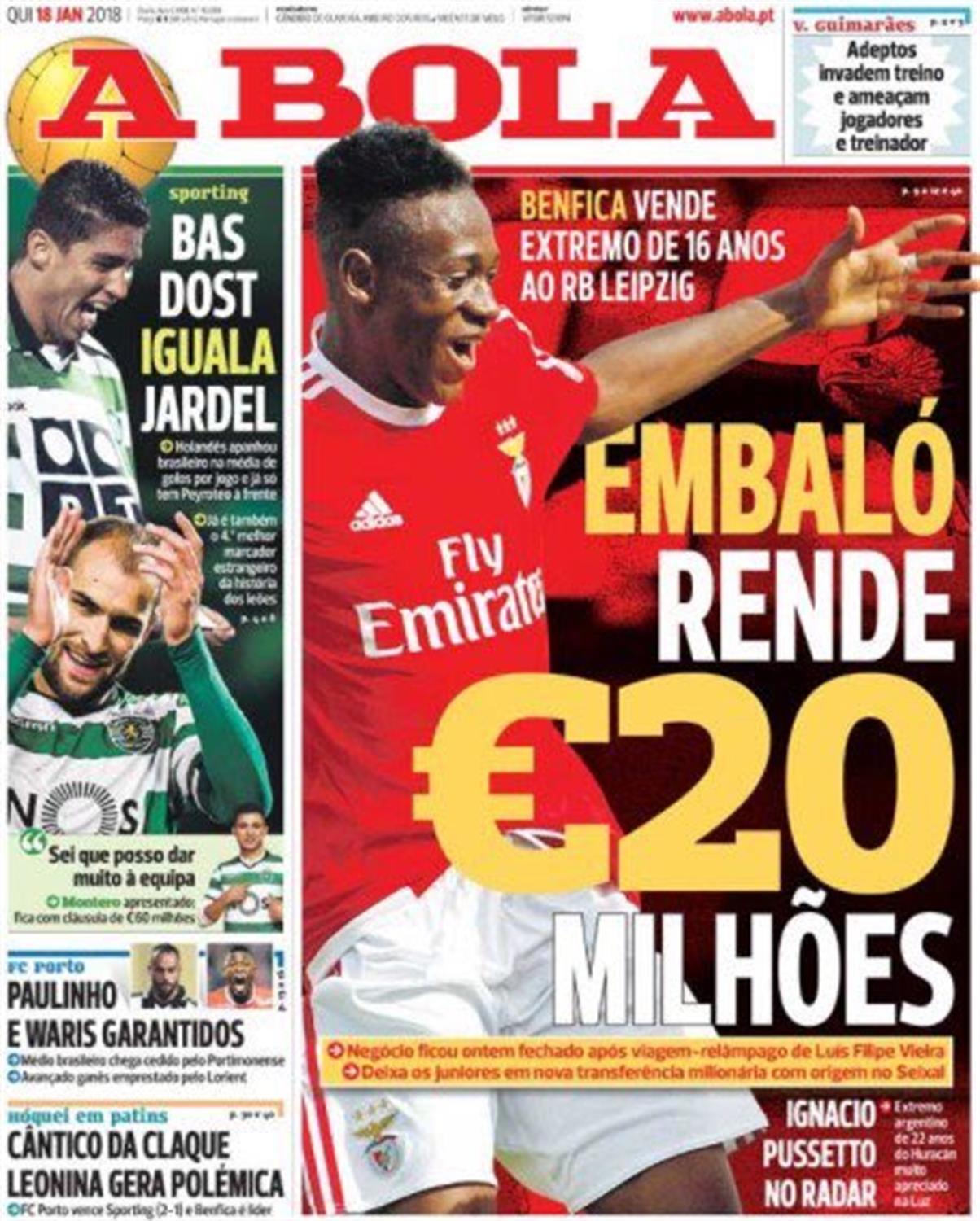 Embalo w swojej reprezentacyjnej karierze zagrał w 15 meczach reprezentacji Portugalii juniorów młodszych, zdobył w tych spotkaniach 7 goli, zaliczył 5 asyst. We wrześniowym finale o puchar Syrenki przeciwko reprezentacji Polski gola jednak nie strzelił. Mecz zakończył się bezbramkowym remisem. ©℗ (par)