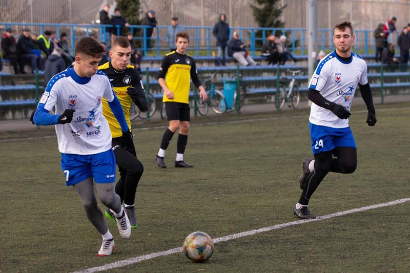 Na zdjęciu: W sparingu z Bałtykiem Koszalin (w żółtych koszulkach) w Błękitnych nie zagrał Filip Karmański i prawdopodobnie wiosną nie zobaczymy go już w Stargardzie.