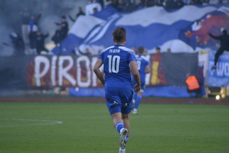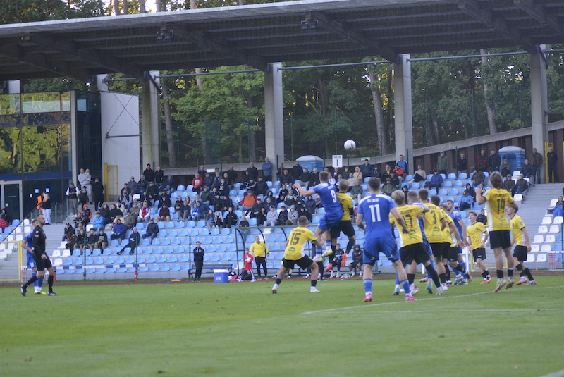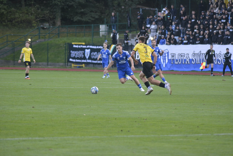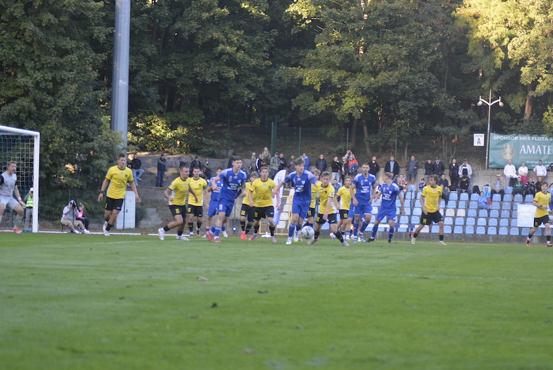Choć obie ekipy były nastawione dość ofensywnie to pierwsza bramka padła dopiero w 80 minucie gry. Autorem bramki był Kacper Kasperowicz, który sprytnym strzałem w zamieszaniu oszukał bramkarza gości. Gdy wydawało się, że Flota zamelduje się w kolejnej rundzie Pucharu Polski, jeden ze spontanicznych rajdów gości lewą stroną zakończył się rzutem karnym. Krzysztofek nie wyczuł intencji strzelca i w 88 minucie zrobiło się 1:1.