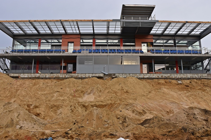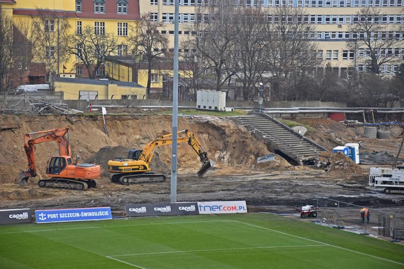 Wykonywanie fundamentów trybuny północnej, czyli dawniej zwanej „niską", prace rozbiórkowe, odbiory w pawilonach - tak mijają kolejne dni na budowie Stadionu Miejskiego im. Floriana Krygiera w Szczecinie.