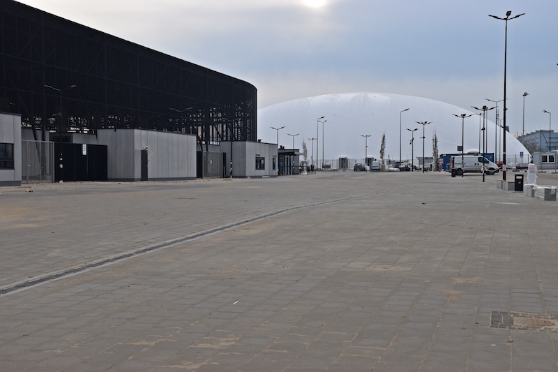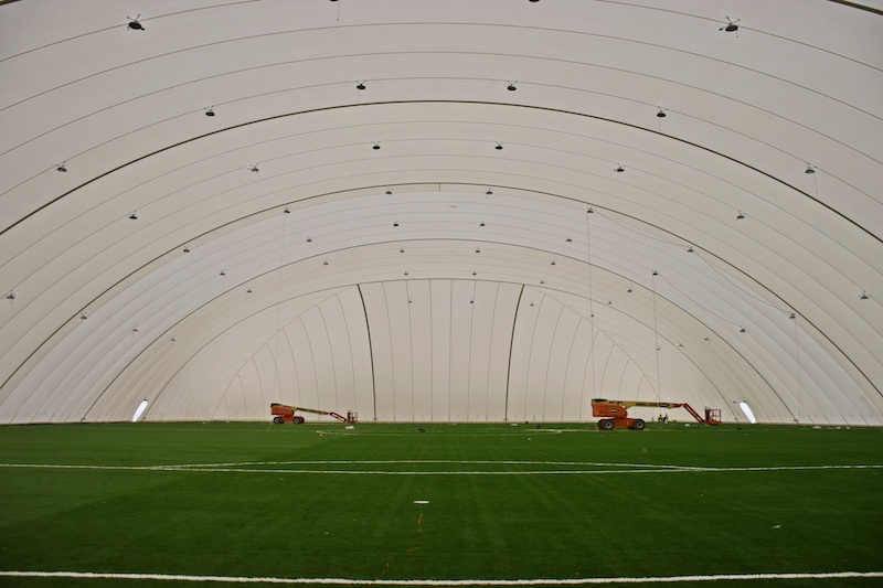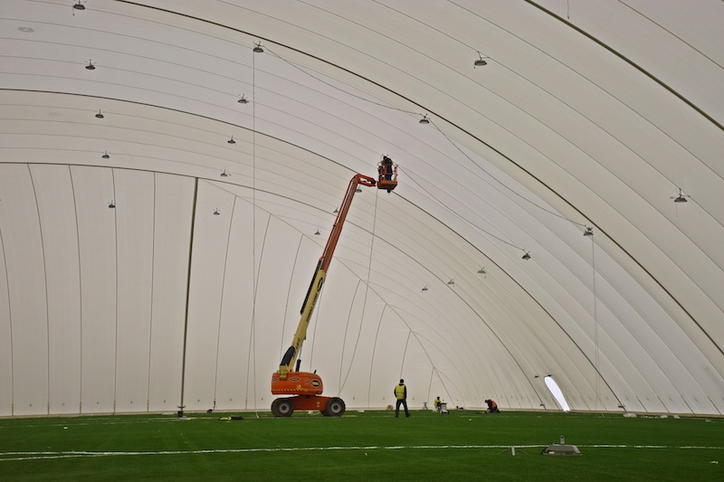 W ostatnim czasie zmieniło się również zagospodarowanie terenu na koronie kompleksu. Wszystko za sprawą zamontowania hali pneumatycznej nad jednym z boisk treningowych (wysokość zadaszenia w najwyższym punkcie to 20 metrów, a wymiary boiska wynoszą 115 x 74 metry). Powłoka pneumatyczna hali składa się z systemu podwójnej membrany, to oznacza, że pomiędzy dwie warstwy wytrzymałych materiałów wdmuchiwane jest gorące powietrze, generowane przez system grzewczo-nadmuchowy. System ten pozwala wytworzyć oraz utrzymać nadciśnienie i temperaturę wewnątrz hali. Aktualnie we wnętrzu prowadzone są prace przy montażu oświetlenia.