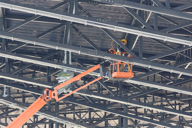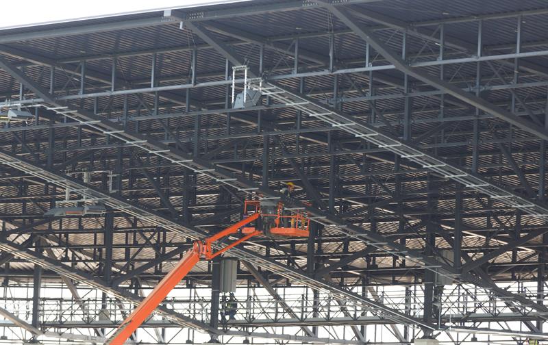 Dużo dzieje się przy pracach związanych z zadaszeniem trybun: zachodniej i południowej. Zamontowano klosze oświetleniowe na tej części trybun i trwają już próby oświetleniowe. Wiele wskazuje na to, że oświetlenie nowego obiektu stworzy wiele wizualnych i artystycznych możliwości włącznie ze zmianą barwy i natężenia według potrzeb, na przykład w momencie prezentacji drużyny, co na pewno wpłynie na atrakcyjność odbioru widowiska sportowego.