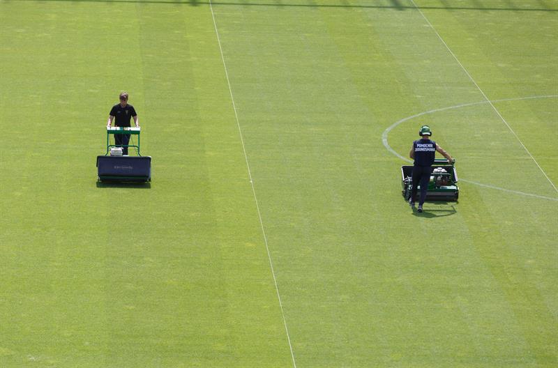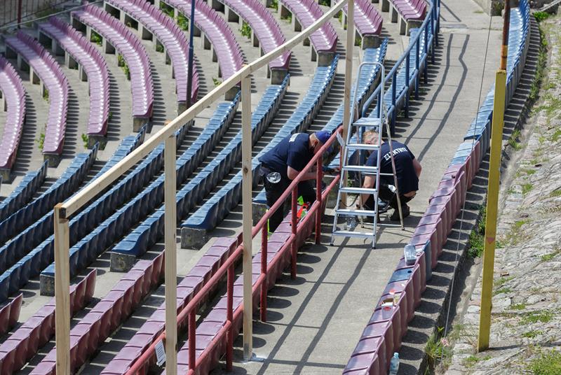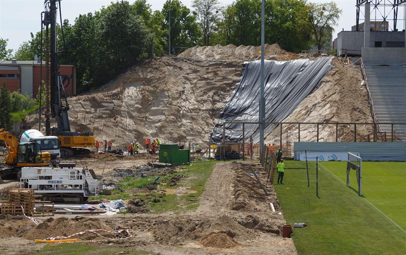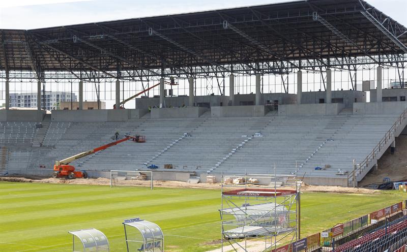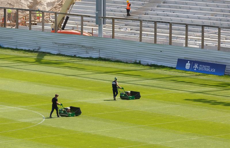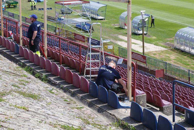Boisko główne przed pierwszym meczem po przerwie spowodowanej epidemią koronawirusa zostało przesunięte w kierunku trybuny zachodniej. Docelowo murawa będzie zerwana i położona na nowo z całym systemem nawadniającym i grzewczym. Na razie dokonano jedynie przeszczepu murawy z jednego miejsca na drugie. Pomalowano już linie na boisku i przeniesiono o kilka metrów w stronę trybuny zachodniej ławki dla zawodników rezerwowych. Gotowe jest już stanowisko telewizyjne.