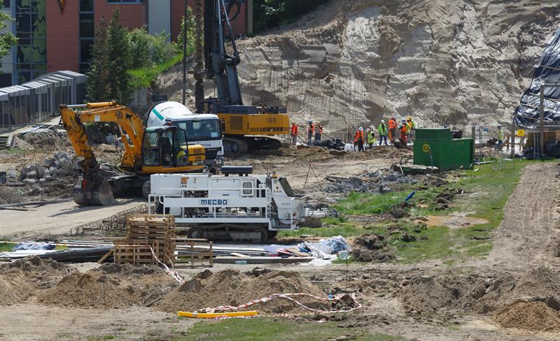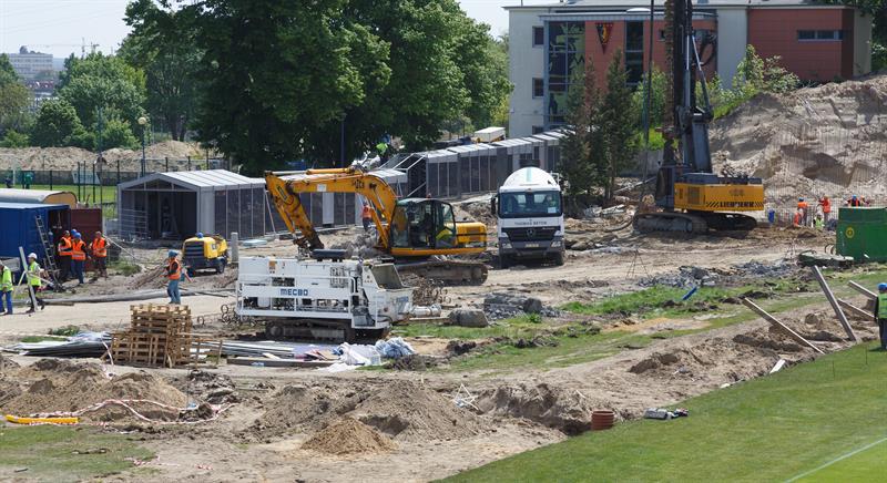 Na razie trwa palowanie miejsc pod trybunę wschodnią, a prace z tym związane odbywają się na innej zasadzie niż przy budowie trybun: zachodniej i południowej. Przy tych trybunach stosowano metodę palowania sprzętem o nazwie kafar, natomiast przy trybunie wschodniej pracuje maszyna wiertnicza o nazwie świder. Zmiana sposobu wbijania betonowych prefabrykatów związana jest z nieco innym ukształtowaniem terenu.