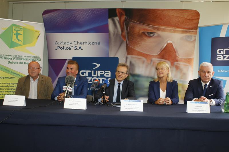 - Kontynuujemy współpracę rozpoczętą w wakacje 2016 roku po zmianie zarządu naszej spółki, gdy powstały w 1968 roku klub z bogatą tradycją, występami w II lidze oraz ćwierćfinałem Pucharu Polski, mocno związany z Zakładami Chemicznymi Police, był w głębokim kryzysie i po wycofaniu z III ligi występował w Klasie Okręgowej, a od tego momentu piłkarze z naszą pomocą wywalczali kolejne awanse - powiedział W. Wardacki. - Grupa Azoty szerokim frontem wspiera wyczynowy sport na najwyższym poziomie, między innymi siatkarzy klubu ZAKSA Kędzierzyn-Koźle, piłkarzy ręcznych Azoty Puławy, skoczków narciarskich, a na naszym terenie siatkarki Chemika Police i oczywiście piłkarzy Pogoni Szczecin, więc teraz, po awansie polickich piłkarzy do III ligi, rozważaliśmy różne warianty dalszej współpracy. Za Chemikiem lobbowała silna grupa, na czele z wiceprezesem Tomaszem Panasem, Mariuszem Różyckim i szczecińską radną Małgorzatą Jacyną-Witt, więc musieliśmy pomóc. Z radością obserwujemy również, że za naszym przykładem, w pomoc Chemikowi mocno włączyła się także Gmina Police. Nasza grupa będzie wspierać działalność klubu związaną ze szkoleniem młodzieży, bo to przecież także w dużej części dzieci naszych pracowników. Pragniemy, żeby młodzi piłkarze z Polic, wychowankowie Chemika, osiągali coraz większe sukcesy, jednocześnie promując Grupę Azoty Police.