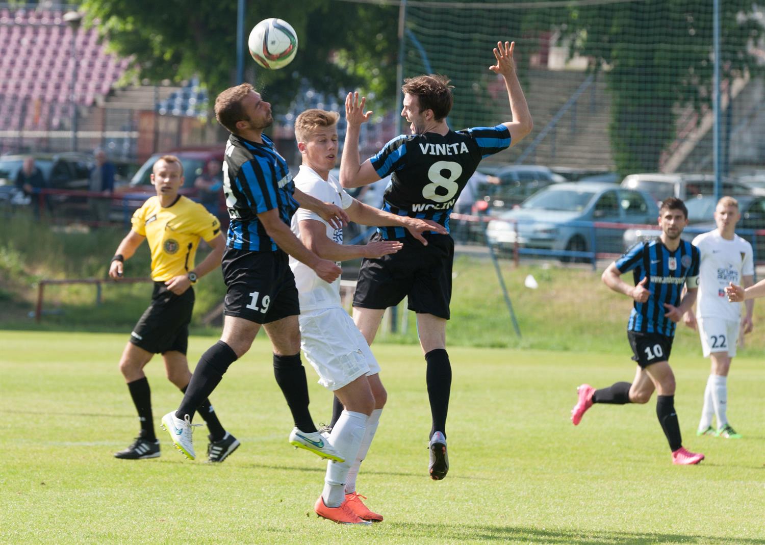 Na zdjęciu: Vineta (w niebiesko-czarnych strojach) kroczy ku II lidze