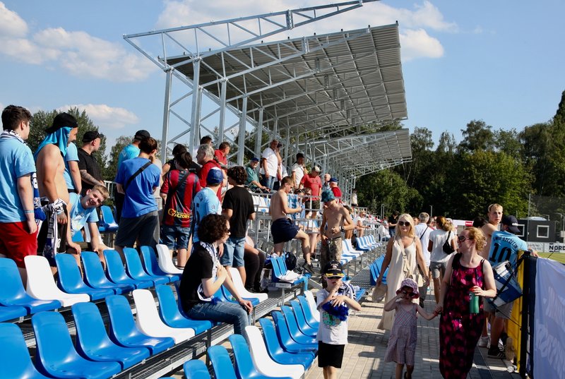 To właśnie przygotowanie stadionu przy ul. Stołczyńskiej było największym wyzwaniem Świtu przed startem II ligi. Obiekt przeszedł w ostatnich tygodniach prawdziwą metamorfozę. W miejscu nasypu od północnej strony powstała nowa trybuna na ponad 900 miejsc, a stara położona po przeciwnej stronie została tymczasowo wyłączona z użytkowania. Prace, które trwały jeszcze w tym tygodniu pozwoliły spełnić minimum licencyjne i cztery dni przed meczem z Kaliszem stadion został dopuszczony do rozgrywek. Na inaugurację przybyło blisko 900 widzów, ale niewielu dotrwało do końca spotkania. Na nasłonecznionej nowej trybunie, bez odrobiny cienia i przy ponad 30-stopniowym upale trudno było wysiedzieć. Kibice szukali ochłody w cieniu drzew za jedną z bramek, ale wielu nie zobaczyło już historycznej bramki Świtu w II lidze.