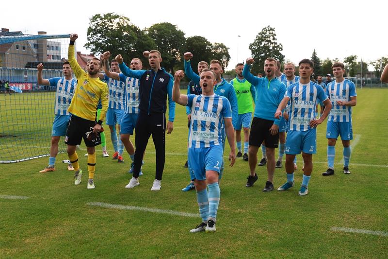 III-ligowy mecz w Stargardzie rozpoczął się od ataków podopiecznych trenera Piotra Klepczarka, którzy po kilku gorących podbramkowych sytuacjach, szybko uzyskali prowadzenie, a później mecz się wyrównał. Początek drugiej połowy także należał do szczecinian, ale później zawodnicy trenera Jarosława Piskorza z determinacją zaczęli dążyć do wyrównania i mecz się otworzył, ale także zaostrzył, stąd jak na derby przystało, było sporo żółtych kartek (dwie otrzymał Jakub Kuzko i od 83. minuty gospodarze grali w liczebnej przewadze). Oglądaliśmy sporo podbramkowych sytuacji w wykonaniu obu zespołów, stargardzian uratowała poprzeczka, a szczecinian - słupek. W końcówce goście grali na czas i zdołali utrzymać skromne prowadzenie.©℗ (mij)