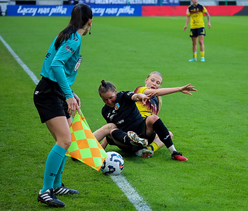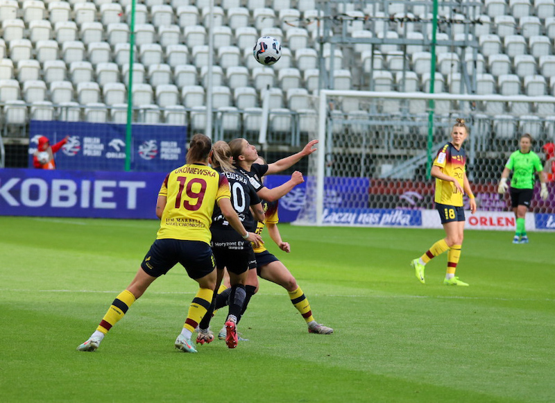 Czerwona kartka: Patrycja Sarapata (81, za drugą żółtą). Żółte kartki: Sarapata, Amelia Chmura, Nikol Kaletka, Zofia Buszewska, Zuzanna Grzywińska, Andrea Horváthová - Łaniewska, Leśkiewicz. Sędziowała: Michalina Diakow (Konin).