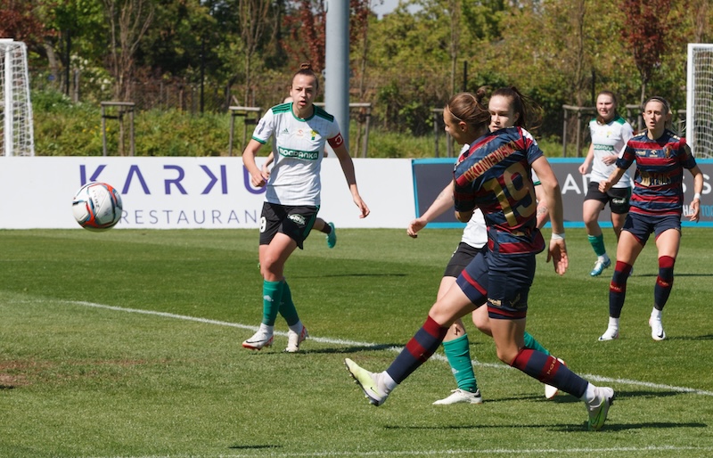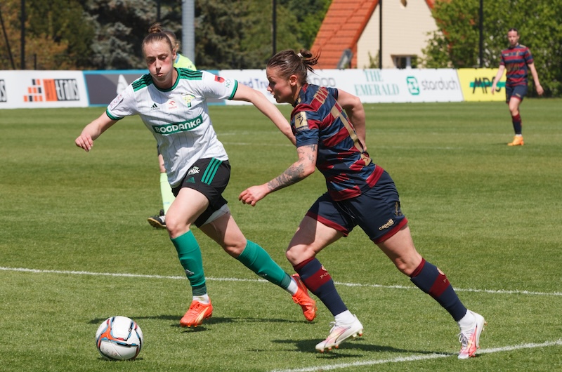 Spotkanie rozpoczęło się od sytuacji sam na sam naszej kapitan Zdunek, jednak górą była bramkarka Sandra Urbańczyk. Kilka minut później łęcznianka Julia Piętakiewicz strzeliła w słupek, a Giętkowska wybiła piłkę z linii bramkowej. Kilka minut przed przerwą ponownie w roli głównej wystąpiła Zdunek, która oddała przepiękny strzał w okienko i Pogoń objęła prowadzenie.