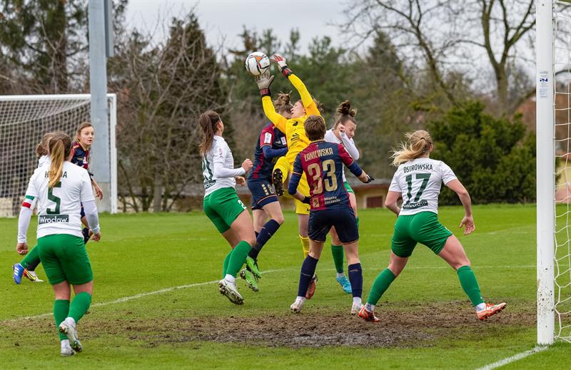 Druga część spotkania była dość wyrównana. Najbardziej aktywna w ekipie Śląska była Joanna Wróblewska, która dwukrotnie uderzała z dystansu, lecz na posterunku była bramkarka granatowo-bordowej ekipy. Wrocławianki wielokrotnie próbowały odrobić straty z pierwszej połowy, ale dopiero w 76. minucie Białoszewska w sytuacji sam na sam z Sapor zanotowała honorowe trafienie. (mij)