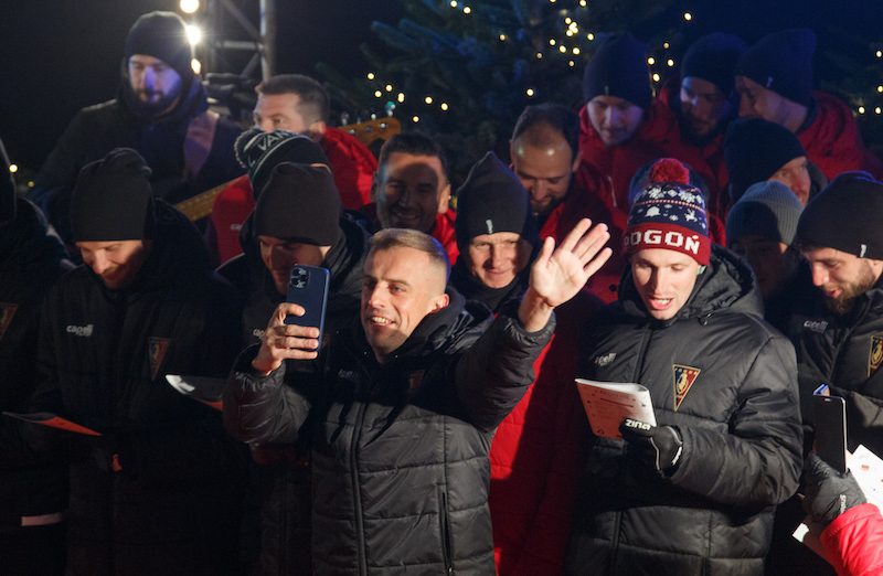 W radosnym oczekiwaniu na święta Bożego Narodzenia wraz z piłkarzami pierwszej drużyny Pogoni odśpiewano znane i uwielbiane przez wszystkich nastrojowe polskie kolędy, a dodajmy, że pomocne okazały się rozdawane kibicom śpiewniki.