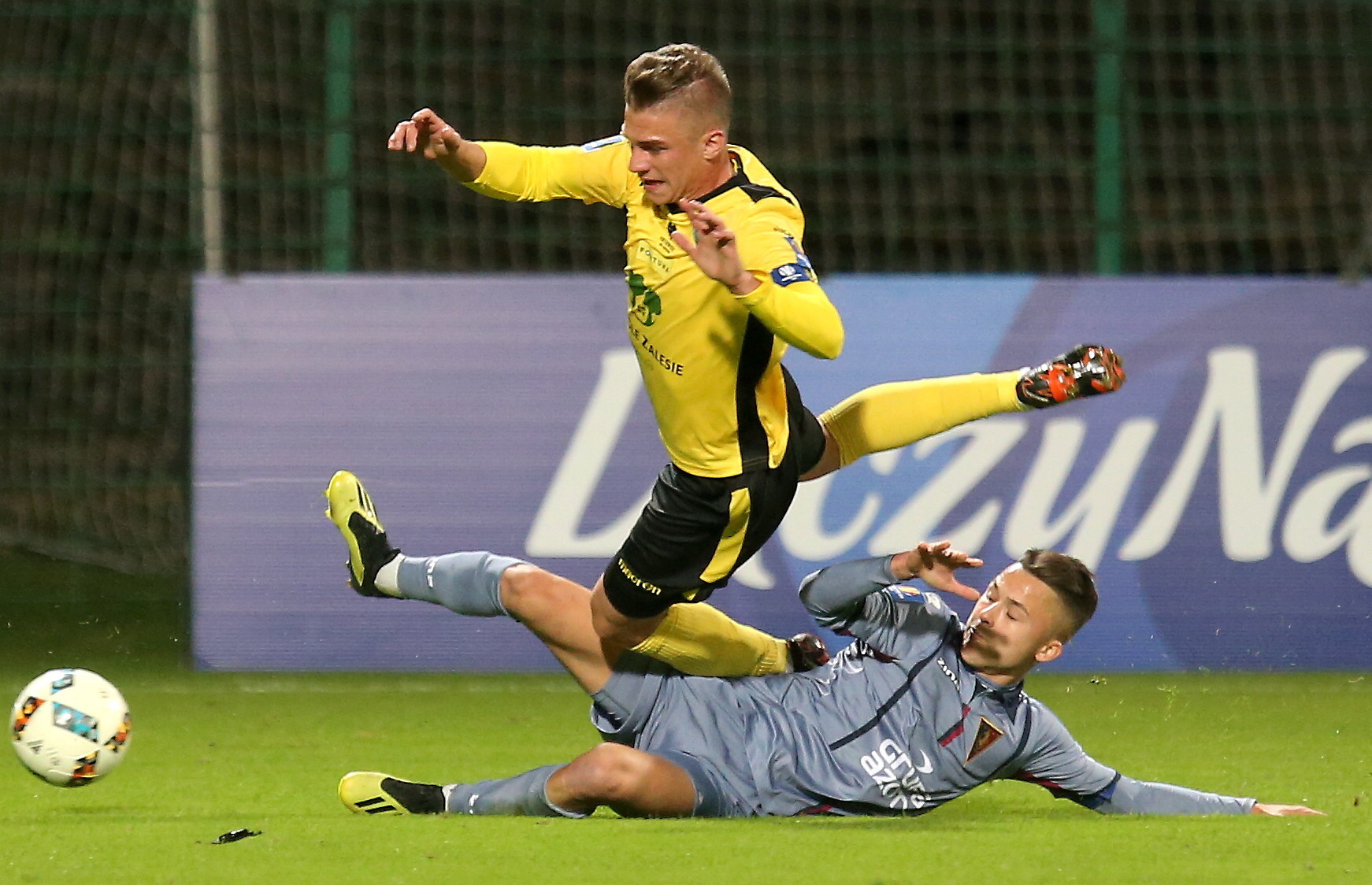 W pierwszej połowie dwóch znakomitych szans nie wykorzystał Drygas - dwa razy spudłował, w słupek zamiast do bramki strzelił Hołota, świetnie stałe fragmenty gry egzekwował Nunes, a Buksa bardzo dobrze radził sobie w indywidualnych pojedynkach z obrońcami miejscowych. To on przed przerwą posłał dwa otwierające podania: najpierw do Hołoty, a następnie do Drygasa.