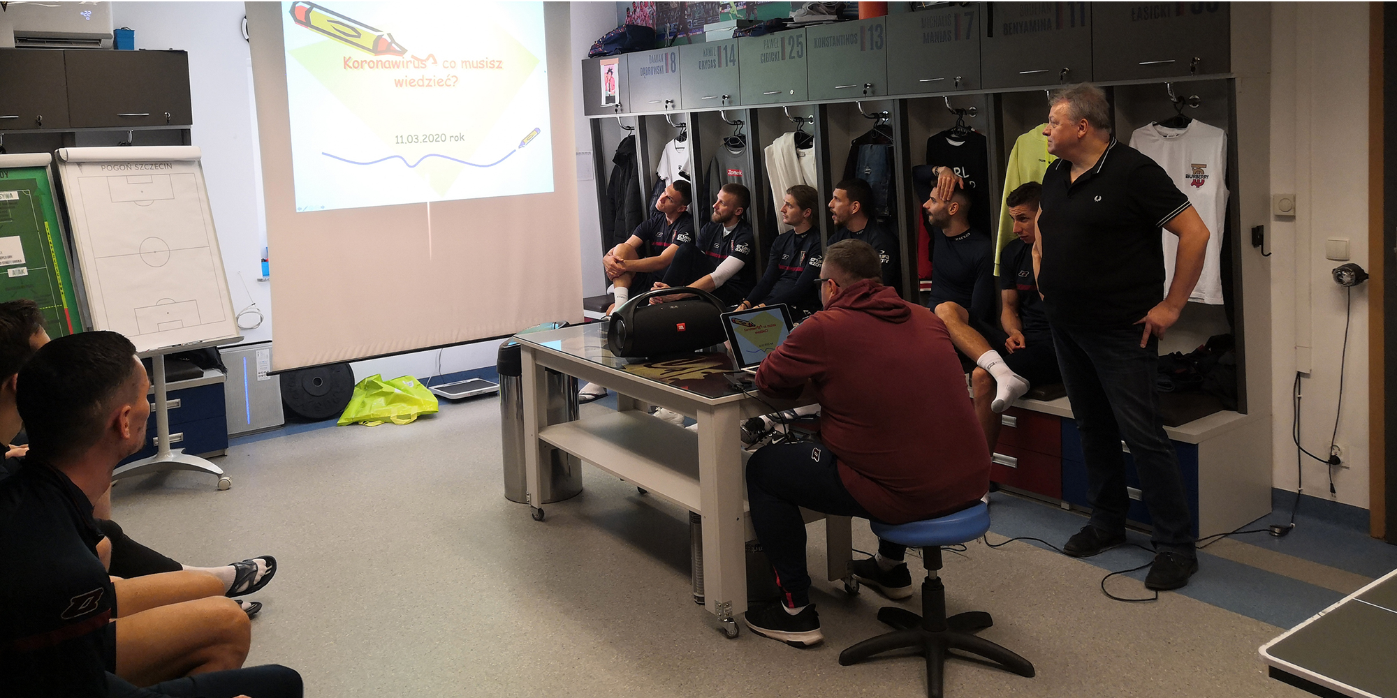 - Najważniejszy przekaz to podanie danych epidemiologicznych dotyczących koronawirusa, jego objawy, a przede wszystkim jak ustrzec się przed zakażeniem. Lepiej zrobić o krok więcej niż żałować potem, że się go nie zrobiło, a można było się ustrzec. Bardzo wiele zależy od postępowania każdego z nas. Na to głównie chcieliśmy zwrócić uwagę – mówi dr n. med. Mariusz Pietrzak, ordynator oddziału chorób wewnętrznych i diabetologii z pododdziałem endokrynologii w szpitalu przy ul. Arkońskiej. - Piłkarze nie są grupą najbardziej zagrożoną jeśli chodzi o najmocniejszy przebieg samej choroby, ale przecież stykają się z wieloma osobami. Często z przypadkowymi ludźmi, którzy mogą ich zaczepić w galerii czy na spacerze. Uczulałem na to, by uważać na to, czy nie rozmawia się z osobami z objawami takimi jak kaszel czy katar, a także kilku innych zasadach, których należy przestrzegać codziennie.