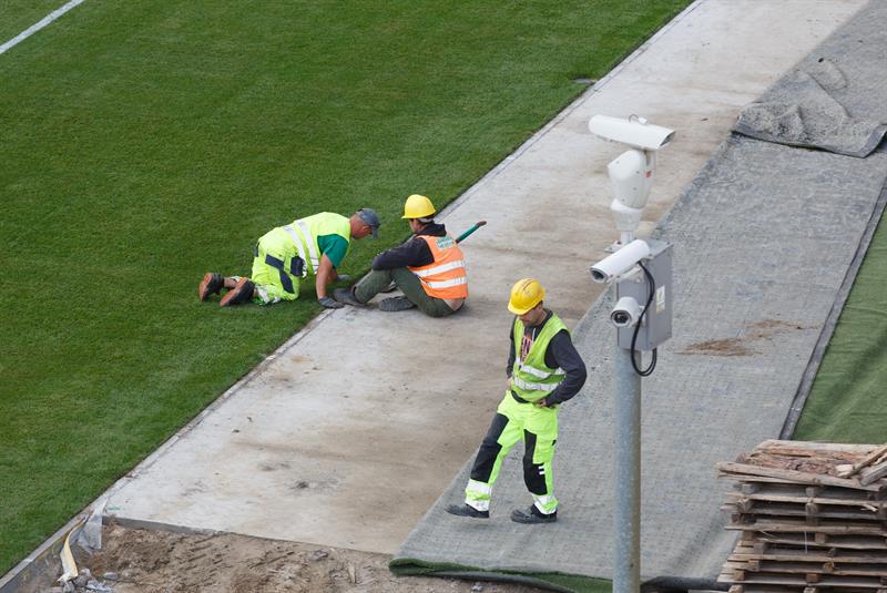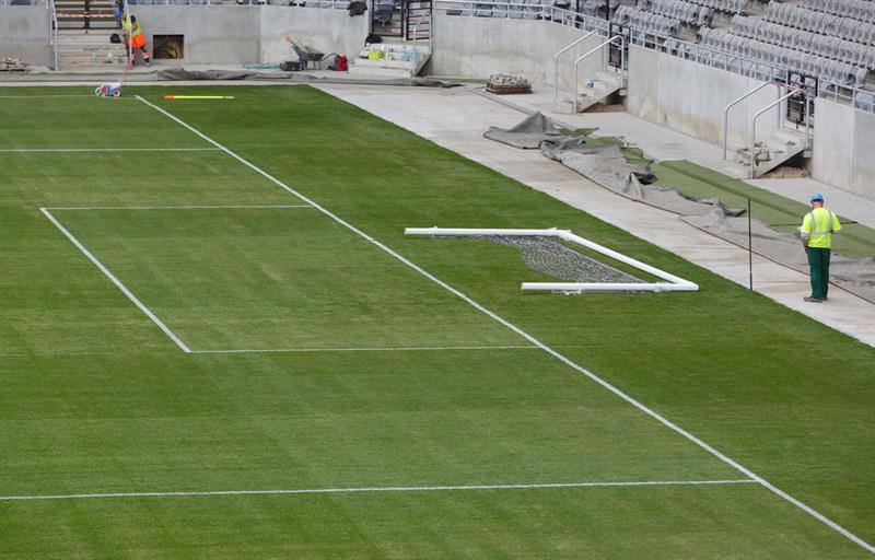 Wymiana boiska ruszyła w połowie lipca. To najbardziej kompleksowa operacja zmiany boiska, jaką szczeciński obiekt przeszedł w swej historii. Poza naturalną, podgrzewaną murawą, wyłożono betonową płytę wokół boiska, na której ułożona została nawierzchnia syntetyczna.