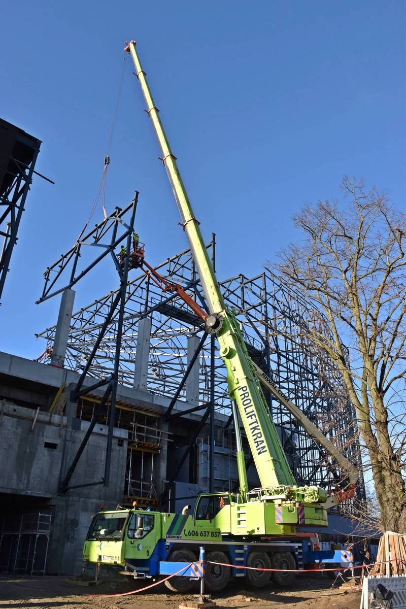 Na miejskim stadionie im. Floriana Krygiera rozpoczął się czwartek (16.12) montaż ostatnich elementów konstrukcji zadaszenia obiektu. Połączono już wszystkie trybuny co pozwala zobaczyć, jaki będzie ostateczny kształt stadionu po modernizacji.