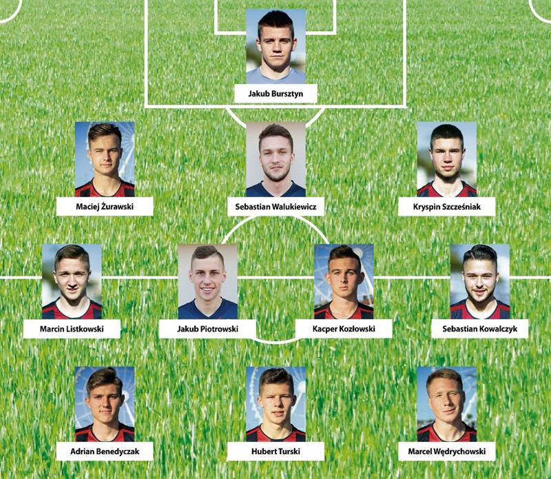Stworzyliśmy jedenastkę grającą systemem 1-3-4-3, a do Walukiewicza dokooptowaliśmy próbowanego na pozycji środkowego obrońcy w III-ligowych rezerwach Macieja Żurawskiego i aspirującego do gry w ekstraklasie, ale jeszcze bez debiutu w najwyższej klasie rozgrywkowej Kryspina Szcześniaka.