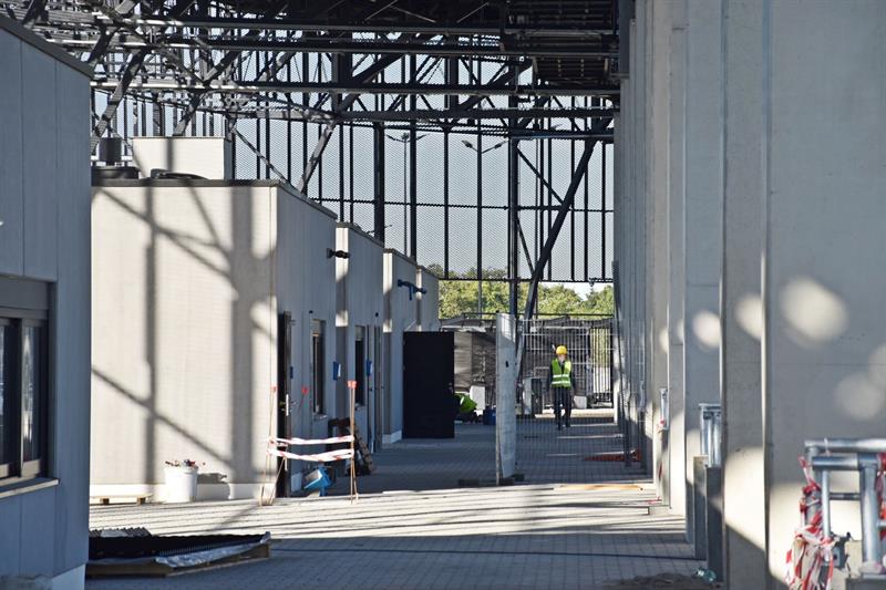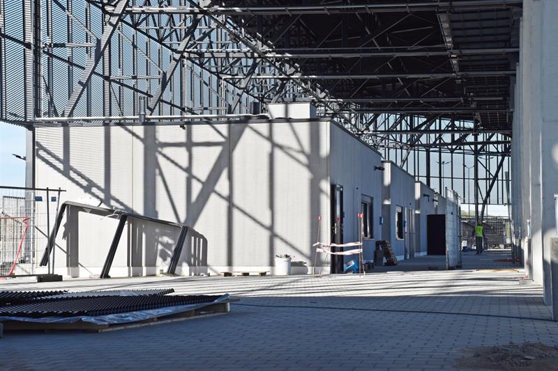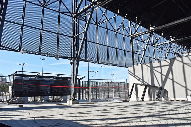 Na koronie obiektu, rozpoczęło się układanie murawy na boiskach kompleksu szkoleniowego. Na placach wokół stadionu, realizowane są prace brukarskie przy budowie miejsc postojowych oraz przy budowie chodników. Przy dojściach do nowych trybun ustawione jest już ogrodzenie, kontynuowany jest montaż siatki na elewacji. W pawilonach handlowo-usługowych, toczą się prace instalacyjne oraz porządkowe.