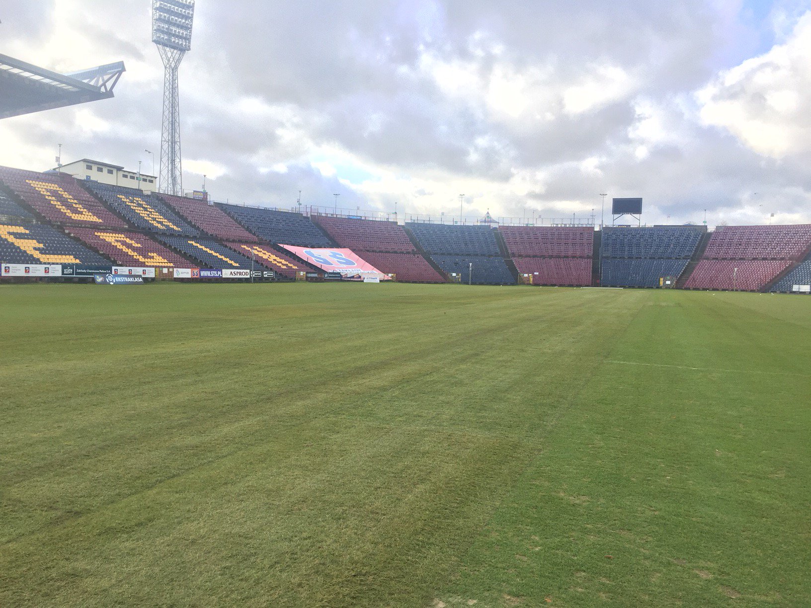 Murawa została niemal całkowicie zdewastowana po meczu rozegranym 25 listopada ubiegłego roku. Pogoń podejmowała wówczas Piasta Gliwice po rzęsistych ulewach i nasiąknięciu murawy dużą ilością wody.