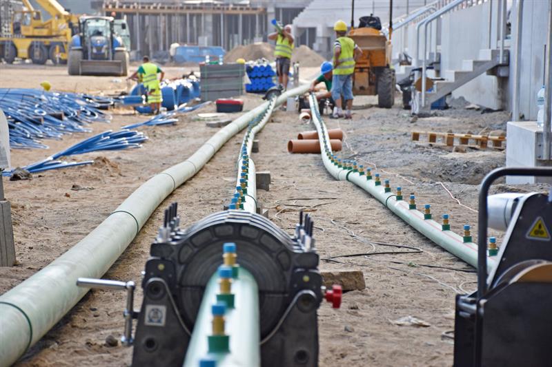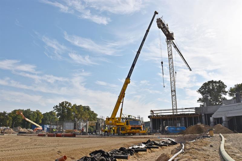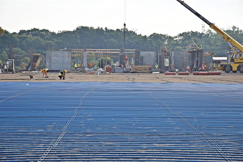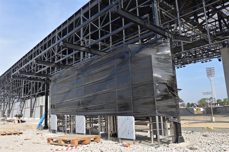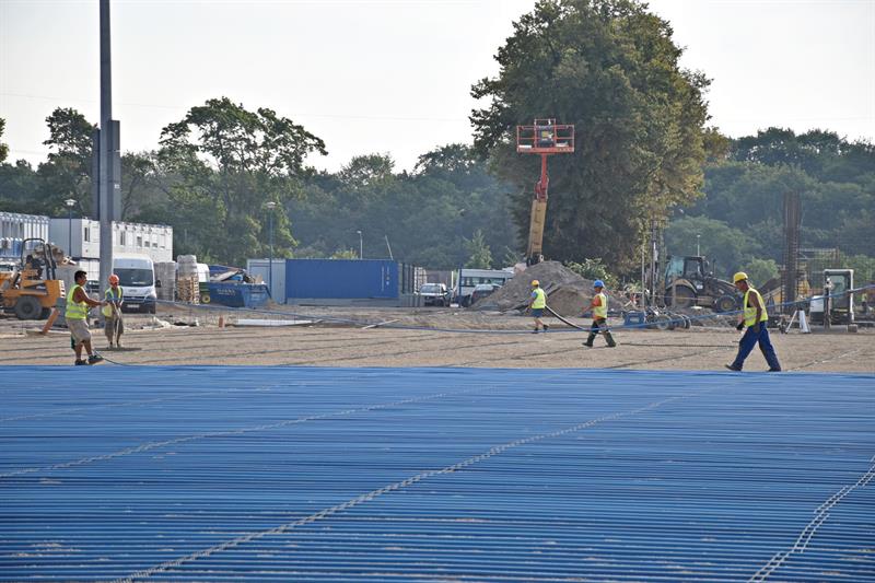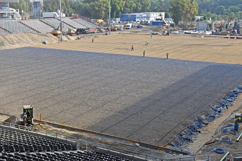 Po zrealizowaniu prac przy drenażu, rozpoczął się montaż kolejnych instalacji na głównej płycie boiska. Aktualnie trwa montaż rurek od ogrzewania murawy. Roboty toczą się również przy budowie wschodniej trybuny. Prowadzone są prace żelbetowe przy stawianiu kolejnych ścian i słupów. Z kolei na nowo wybudowanych trybunach, montowane są kolejne fragmenty elewacji z siatki ciętociągnionej.