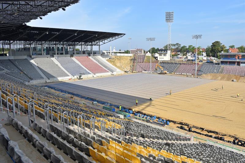 Rośnie trybuna wschodnia Stadionu Miejskiego, trwa montaż kolejnych instalacji na głównej płycie boiska, zmienia się zagospodarowanie terenu. Prace postępują przy niemal każdym elemencie budowy dużego piłkarskiego kompleksu, ale na dziś priorytetem jest jak najszybsze ukończenie budowy nowej płyty boiska.