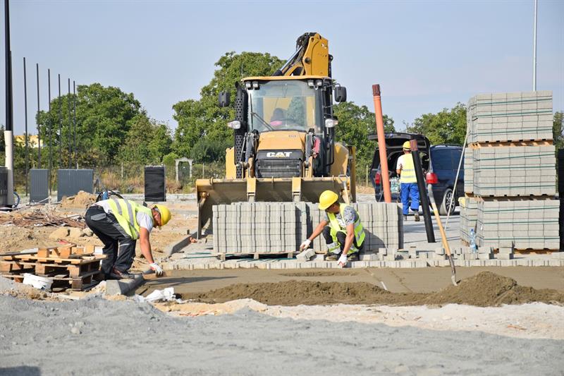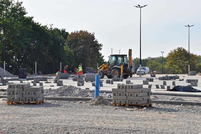 Zmienia się również zagospodarowanie terenu. Trwa budowa parkingów i dróg dojazdowych. Ustawiane są słupy od oświetlenia terenu. Prowadzone są prace brukarskie na koronie stadionu, trwa montaż ogrodzenia stadionu, widoczne są również bramki wejściowe.