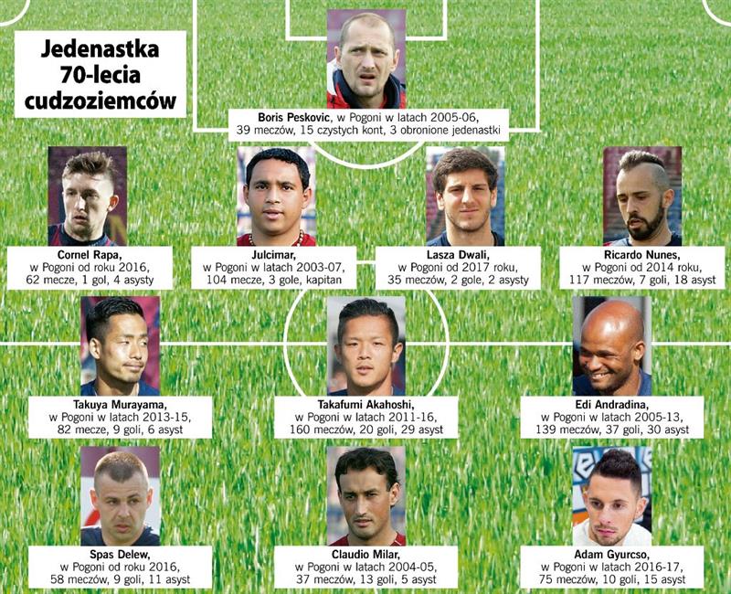 W związku z przypadającą na obecny rok rocznicą 70-lecia istnienia Pogoni Szczecin postanowiliśmy dokonać wyboru najlepszej jedenastki obcokrajowców. Na szeroką skalę pojawili się w polskim futbolu dopiero w XXI wieku. Nic zatem dziwnego, że w gronie najlepszych obcokrajowców w historii są piłkarze z ostatnich dwóch dekad.