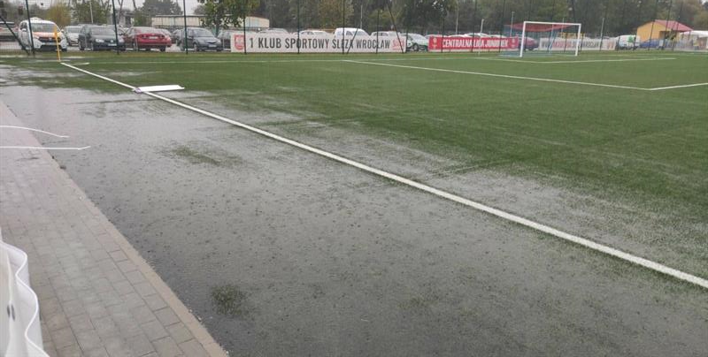 Piłkarki nożne ekstraligowej Olimpii Szczecin pojechały na sobotni ligowy mecz ze Śląskiem do Wrocławia i gdy przybyły godzinę przed planowanym rozpoczęciem spotkania na stadion Ślęzy, gdzie miały grać, zobaczyły na zalanej wodą murawie boiska... sędziny kopiące piłkę, które oświadczyły, że w takich warunkach nie da się prowadzić zawodów.
