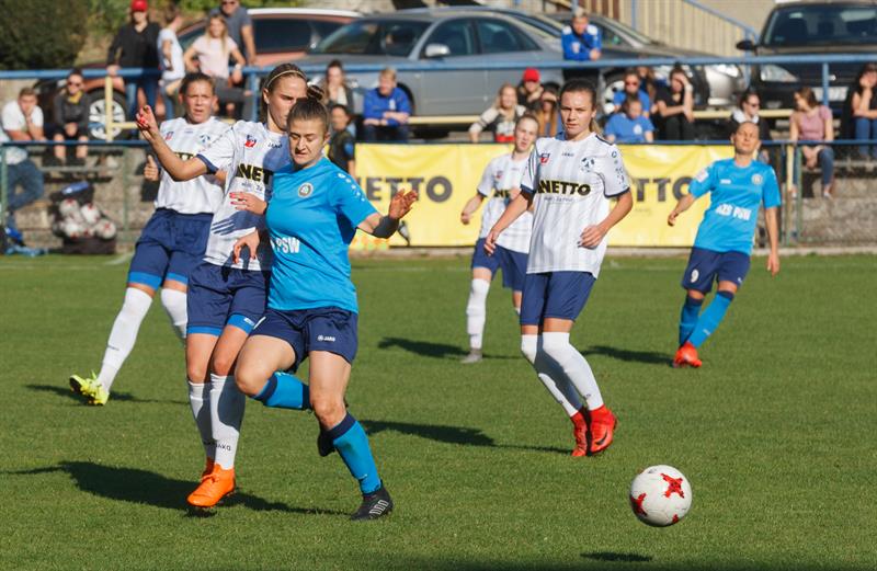 Toczone w jesiennym południowym słońcu spotkanie, rozpoczęło się bardzo pomyślnie dla szczecinianek, które już w 24 minucie objęły prowadzenie po strzale Ratajczyk. Niestety, dwie minuty później zespół gości wyrównał, a tuż przed przerwą wyszedł na prowadzenie, po po faulu Grosickiej w polu karnym, jedenastkę wykorzystała Cieśla.