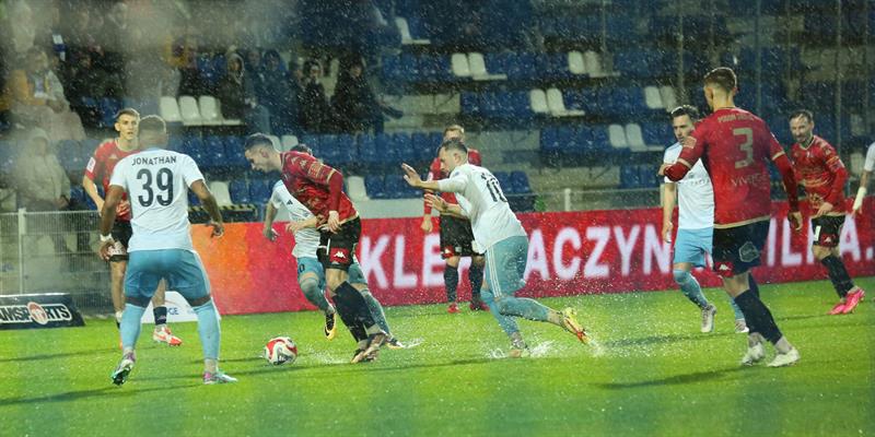 Kołobrzeżanie zagrali bez ukaranych czerwonymi kartkami przed tygodniem: trenera Macieja Bartoszka, asystenta Piotra Kieruzela (na ławce rezerwowych zastępował ich Brazylijczyk Hermes) i reprezentanta Polski młodzieżówki na lewej obronie Cezarego Polaka, a ta trzecia absencja sprawiła, że sztab szkoleniowy gospodarzy zdecydował się wystawić młodzieżowca w bramce, co chyba nie okazało się dobrą decyzją...