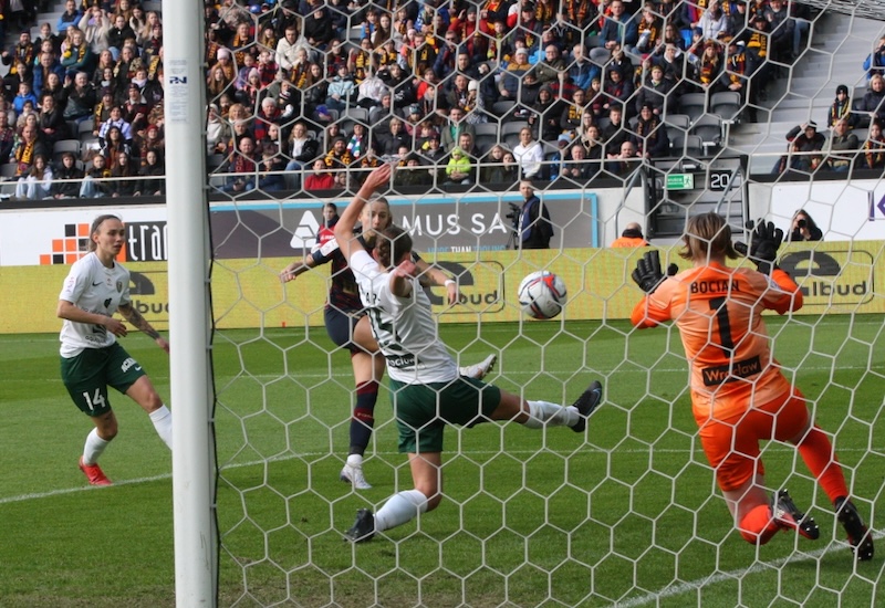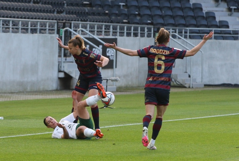 Liderujące w tabeli piłkarki kobiecej Pogoni po raz pierwszy zagrały na głównym stadionie i przed blisko 3-tysięczną widownią i niestety, po raz pierwszy w tym sezonie... przegrały.
