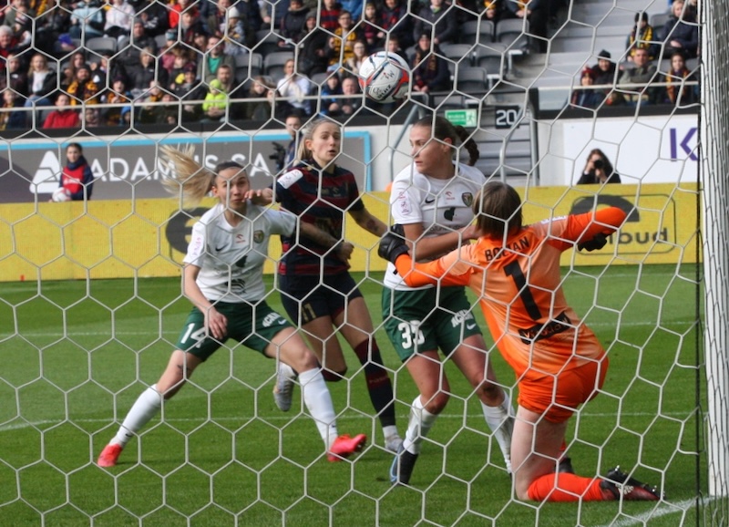 Na drugą połowę szczecinianki wyszły jeszcze bardziej zdeterminowane i kolejną świetną okazję zmarnowała Oleszkiewicz, następnie po dośrodkowaniu z rzutu rożnego, szansę na zdobycie gola miała również Litwiniec. Dobrą akcję lewym skrzydłem przeprowadziła Crim, ale piłka minimalnie minęła słupek. W 72. minucie na prowadzenie wyszedł Śląsk, gdy Białoszewska po dobrym podaniu wygrała sytuację sam na sam z Palińską. Dziesięć minut później wynik podwyższyła Żurek. W 90. minucie Emilia Zdunek dała sygnał do ataku i zdobyła kontaktową bramkę, lecz zabrakło już czasu na wyrównanie... (mij)