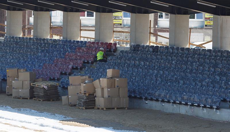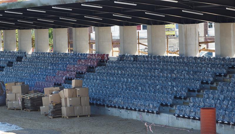 Rozpoczął się montaż siedzisk na trybunie zachodniej budowanego stadionu w Szczecinie. Krzesełka instalowane będą przez następne dni. W pierwszej kolejności wypełniona zostanie nimi trybuna zachodnia, a więc ta zlokalizowana za bramką.