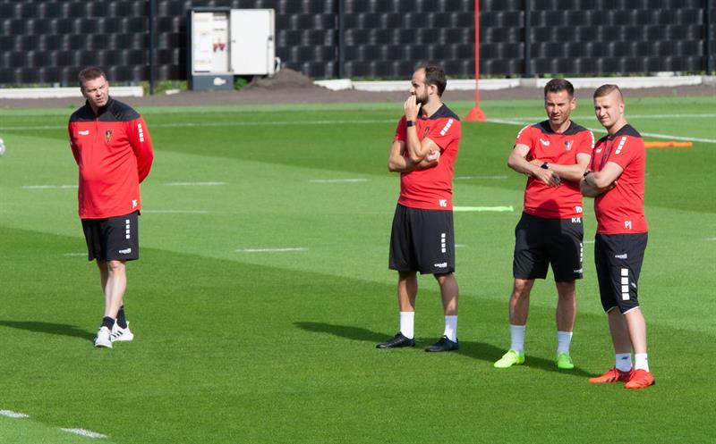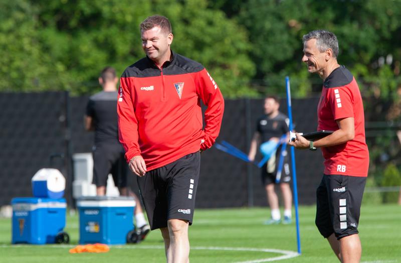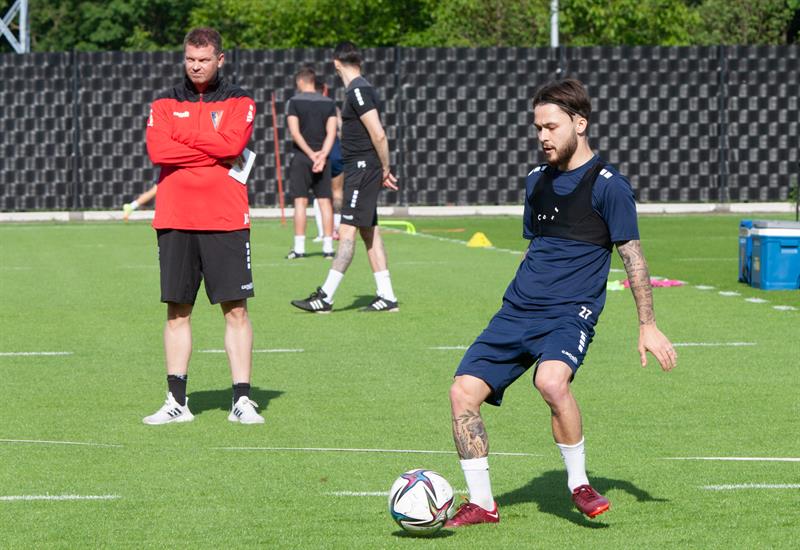 Piłkarze ćwiczyli rozgrywanie akcji w różnych wariantach, później odbyła się gra zadaniowa na utrzymanie piłki w nierównych składach, a na koniec portowcy musieli pokonać dwa okrążenia boiska... bez butów. Nowy trener nie angażował się w prowadzenie zajęć, bo wyręczali go liczni pomocnicy i jedynie po treningu na środku boiska wygłosił krótką pogadankę.