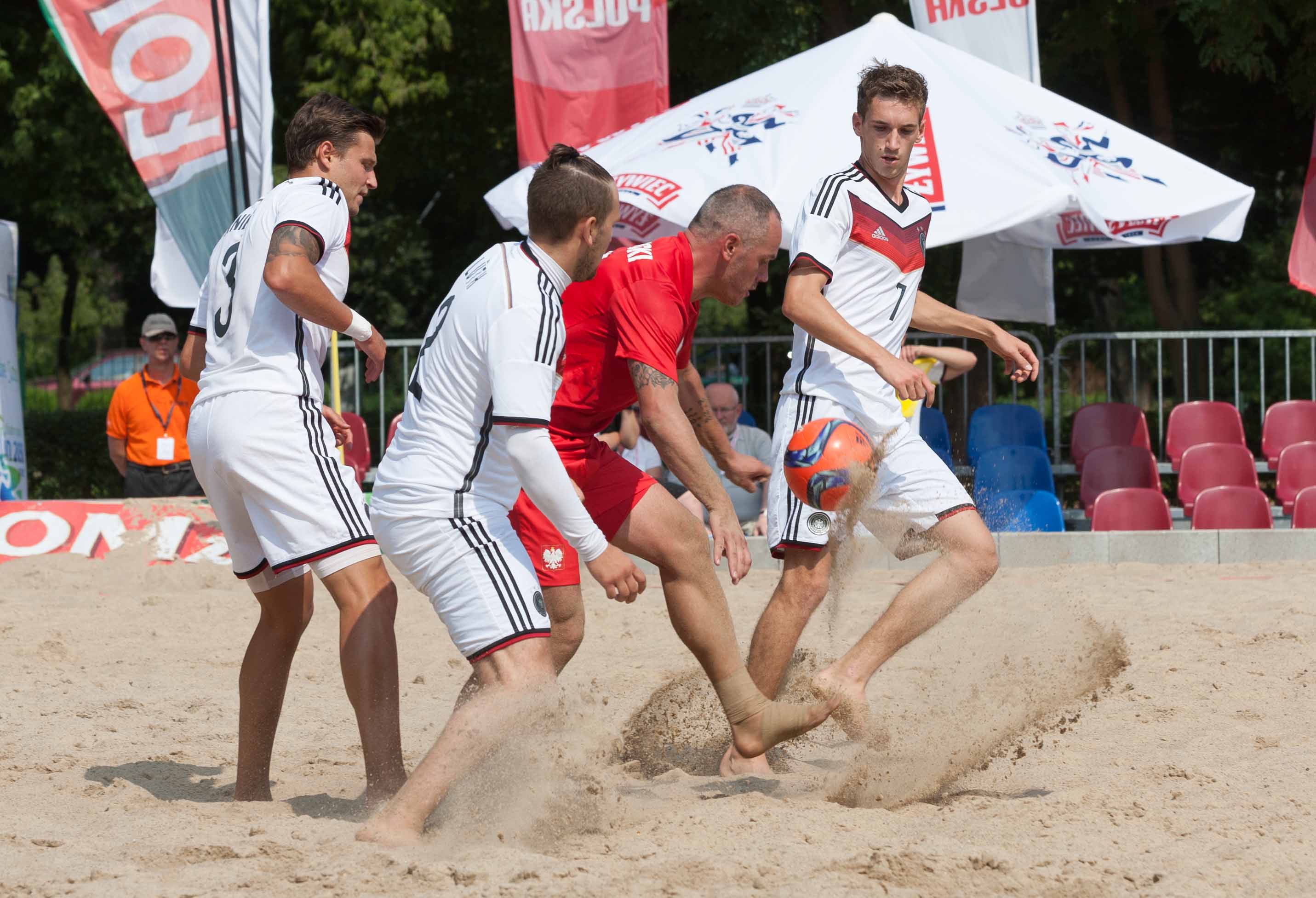 Polska przegrała z Niemcami 2:3 (0:1, 2:2, 0:0) w oficjalnym meczu piłki nożnej plażowej rozegranym w Szczecinie. Bramki zdobyli: Krawczyk i Saganowski dla Polski, oraz Romrig, Luth i Biermann dla Niemiec.