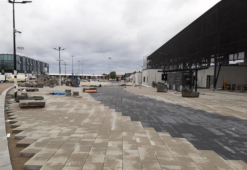 Na trybunie wschodniej trwają prace żelbetowe, a na łuku południowo-wschodnim rozpoczęto roboty murarskie i posadzkarskie. Na terenie kompleksu coraz bardziej zaawansowane są prace związane z zagospodarowaniem terenu. Na placach przy stadionie układane są płytki betonowe, a na drodze od ul. Witkiewicza położono już warstwę ścieralną.