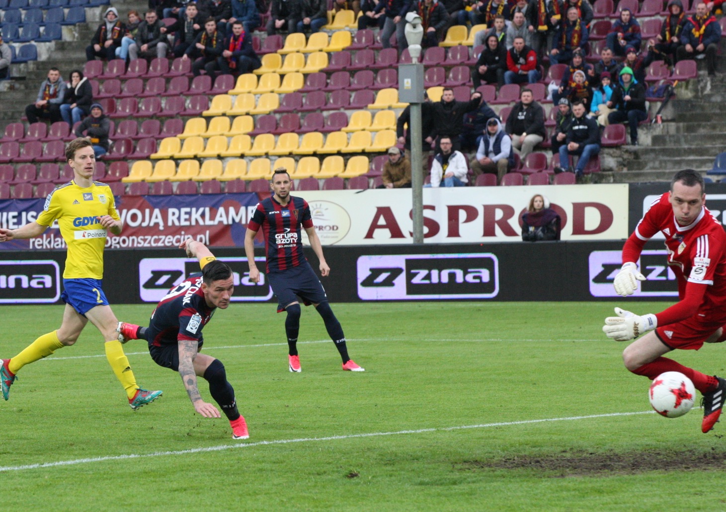 To był mecz pełen paradoksów. Dwa gole zdobył Frączczak, który do meczu z Arką legitymował się wstydliwym dorobkiem dwóch celnych strzałów na bramkę przeciwnika w tym roku. 30-letni napastnik tym razem był skuteczny, zdobył dwa gole, ma ich na koncie w obecnym sezonie już 10, jednak prócz sytuacji, w których znakomicie się odnajdywał w polu karnym, to nie rozgrywał dobrego meczu.