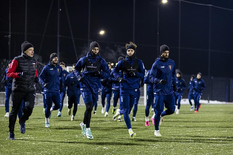 We wtorek wieczorem piłkarze ekstraklasowej Pogoni Szczecin powrócili na boisko po trzech tygodniach przerwy, a drużyna w trudnej, zimowej aurze pracowała z piłką na boisku od strony ul. Twardowskiego.