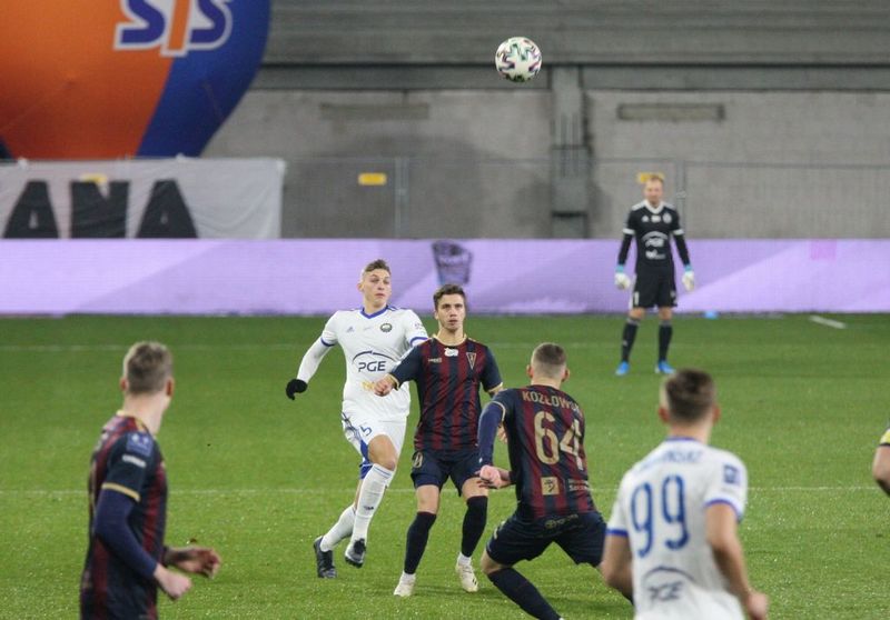 Pogoń rozpoczęła mecz od strzałów z lewej strony Matyni i Hostiki, a ten drugi do przerwy próbował Gliwę pokonać aż pięciokrotnie. W 43 minucie po jego strzale, dobitka z bliska Zahoviča dała naszej drużynie prowadzenie. Wcześniej dwukrotnie groźnie główkował Drygas; raz w poprzeczkę, a raz tuż obok słupka. Bliski zdobycia gola dalekim strzałem był też Dąbrowski.