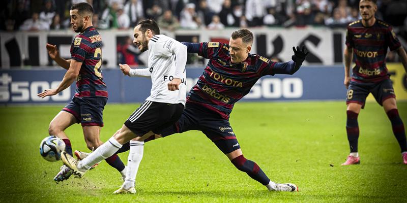 W 13. minucie Kapustka strzelił obok bramki, a po chwili strzał Augustyniaka skończył się rykoszetem i rzutem rożnym. Po kornerze strzelał Ribeiro, ale lot piłki zdołał jeszcze zmienić Gamboa i legioniści mieli tylko słupek. WEojskowi nadal przeważali, ale długo bez groźniejszych okazji. W 38. minucie Cojocaru obronił uderzenie Guala w samo okienko tzw. krótkiego rogu. Po rzucie rożnym główkował jeszcze Burch, ale Cojocaru znów był na posterunku. W doliczonym czasie nasz bramkarz obronił jeszcze strzał Kapustki, a w odpowiedzi uderzenie Biczachczjana odbił Hładun, a dobitka była troszkę niecelna.