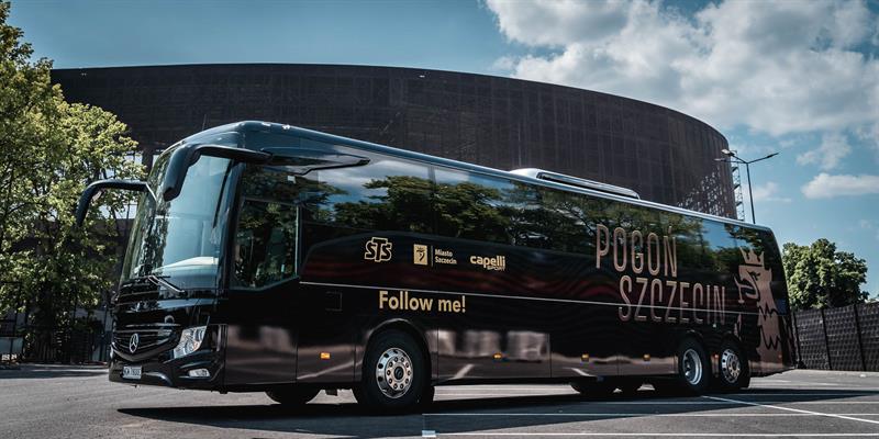 Od kilku lat piłkarzy Pogoni przewożą autokary oficjalnego przewoźnika klubu, czyli firmy Follow me. Od tego sezonu wygoda podróży będzie jeszcze większa, bo naszą Pogoń przewozić będzie zupełnie nowy pojazd, dostosowany do potrzeb drużyny. Jest to nowoczesny Mercedes z serii Tourismo, w którym dokonano istotnych modyfikacji. We wnętrzu ograniczono liczbę foteli do 39, dzięki czemu każdy z podróżujących będzie miał więcej miejsca. Zarówno przed sobą, ale i za plecami, co pozwoli swobodnie opuszczać oparcie fotela do pozycji niemal leżącej. Część miejsc zaprojektowano w układzie stolikowym.