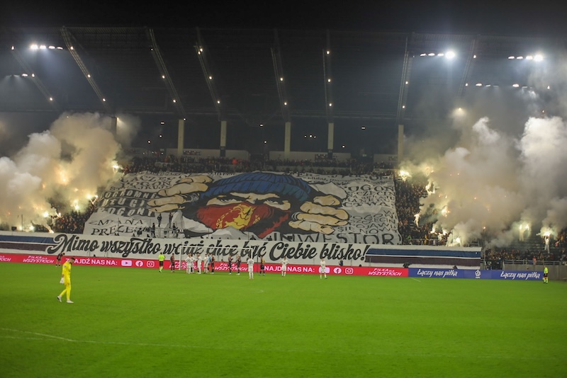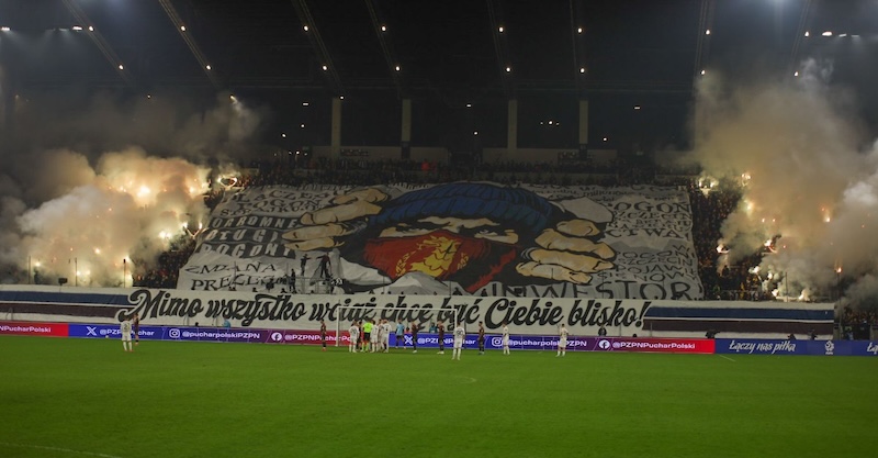 Przed meczem Pogoni z Piastem szczecińscy szalikowcy wywiesili ogromny transparent z granatowo-bordowymi akcentami o treści: „Mimo wszystko wciąż chcę być Ciebie blisko!". Później rozszerzyli swój przekaz wciągając w asyście rac olbrzymią sektorówkę, na której napisali o licznych nieprawidłowościach w swoim ukochanym klubie, m.in.: marnotrawieniu pieniędzy, ogromnych długach, widmie bankructwa i strajku piłkarzy, a były też zdania o zmianie prezesa i nowym inwestorze. Później doszło do patriotycznych akcentów, bo na płocie pojawiło się zaproszenie na piątkowy Szczeciński Marsz Żołnierzy Wyklętych, który rozpocznie się o godz. 16.45 apelem pamięci i złożeniem wieńców pod tablicą pamięci przy Aresztem Śledczym przy ul. Kaszubskiej, a następnie przejdzie ulicami: Stoisława, Potulicką, Narutowicza i Kopernika na Plac Zwycięstwa kończąc się pod Kościołem Garnizonowym, gdzie o godz. 18 odbędzie się Msza Św. w intencji Żołnierzy Wyklętych. (mij)