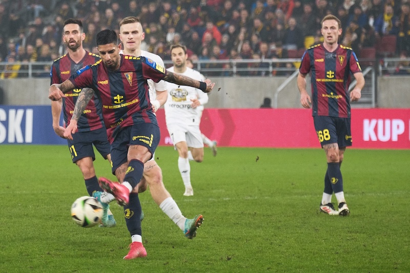 Pozostałe wyniki 1/4 finału PP: Ruch Chorzów - Korona Kielce 2:0 (1:0), Legia Warszawa - Jagiellonia Białystok 3:1 (0:1), Polonia Warszawa - Puszcza Niepołomice czwartek godz. 18.