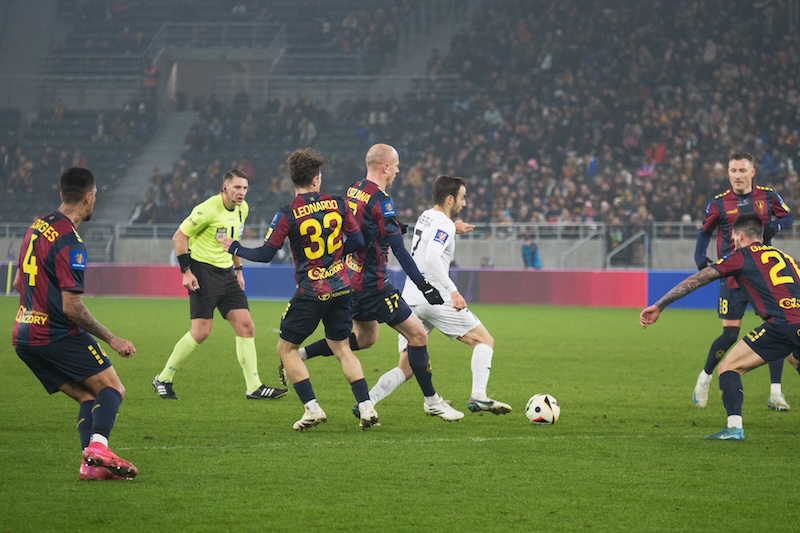 Środowy pucharowy pojedynek był bardzo podobny do ligowego meczu tych drużyn, który odbył się w grodzie Gryfa w październiku i zakończył wygraną Dumy Pomorza po jedynym golu w ostatniej sekundzie, a cechą wspólną obu spotkań było koncentrowanie się obu drużyn na grze obronnej i dlatego oglądaliśmy dość mało ofensywnych akcji. W regulaminowym czasie, a szczególnie w pierwszej połowie, dominowali goście, a Pogoń próbowała przejąć inicjatywę dopiero gdy zbliżała się dogrywka, zaś po objęciu prowadzenia skoncentrowała się na obronie korzystnego rezultatu, czemu służyły też defensywne zmiany.
