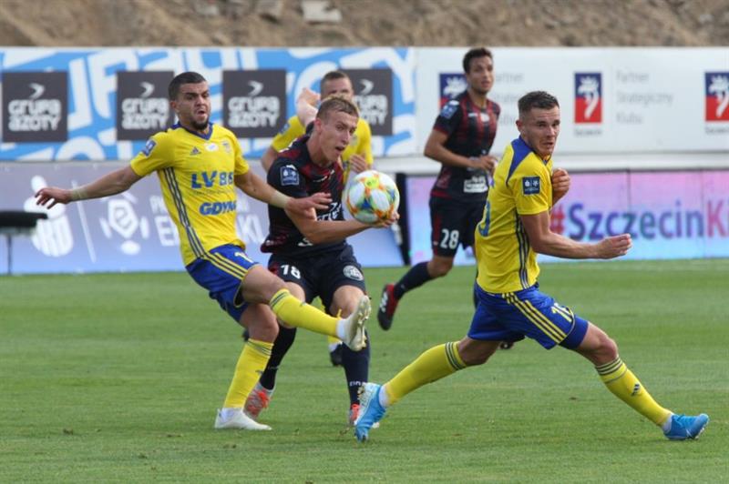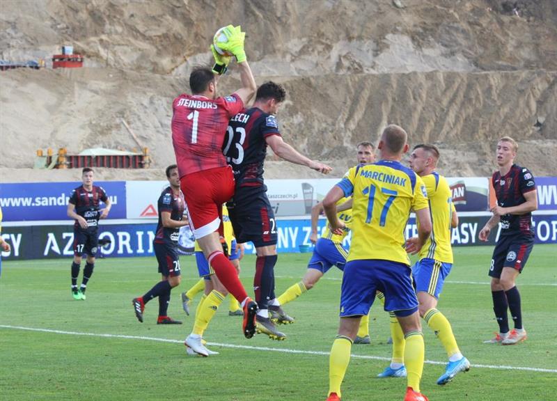 Z kolei Arka była w swoich ofensywnych działaniach bardziej konkretna i w pierwszej połowie mogła prowadzić. Trzy razy gospodarzy od utraty gola ratował Stipica, raz po swoim błędzie i złym wybiciu piłki. Chorwat jednak znów należał do najlepszych piłkarzy w drużynie Pogoni i znów mocno przyczynił się do wygrania meczu, szczególnie jedną kapitalną interwencją po przerwie.